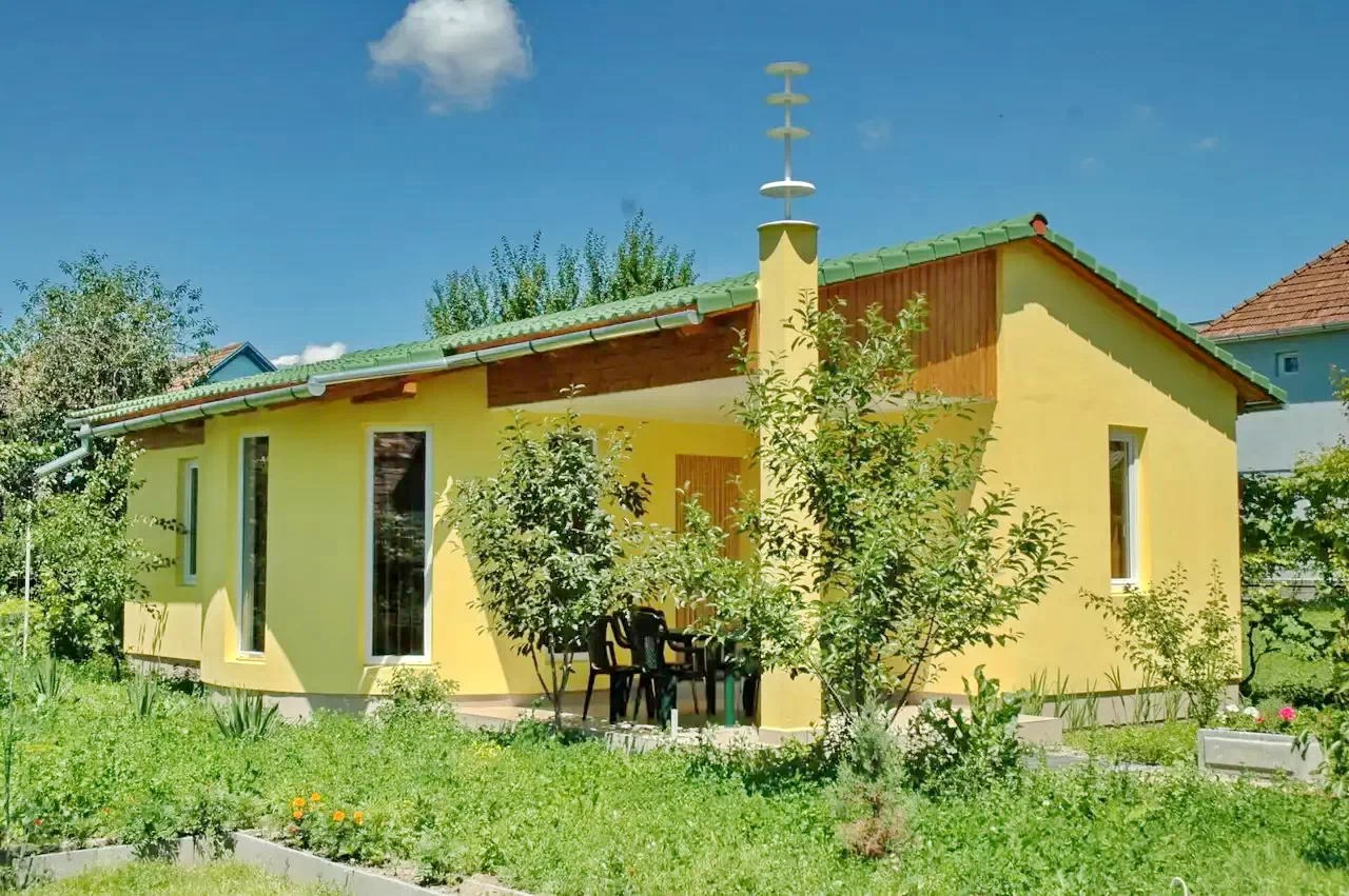 - Clădirea este amplasată în grădina proprietății gazdei, într-un cadru natural frumos, departe de aglomerația și zgomotul orașului, funcționând ca o adevărată casă de vacanță.