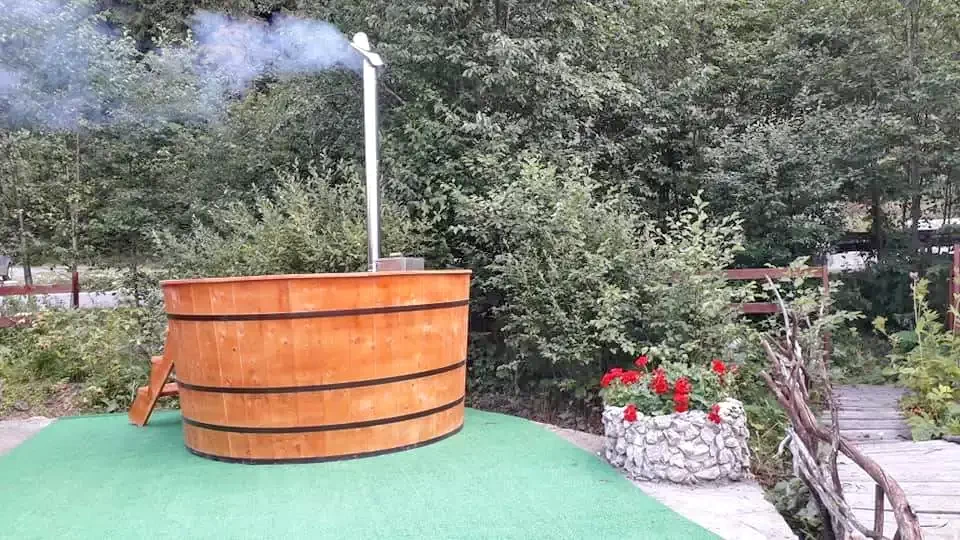 - Băi: Băi cu duș în motel și vilă, băi comune pentru căsuțele de lemn.