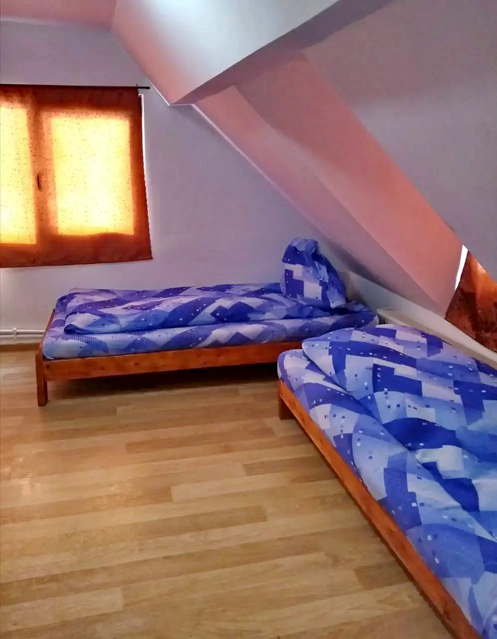 - Cabană: 8 locuri, 2 camere triple și 1 cameră dublă, WC și chiuvetă la etaj, duș la parter.