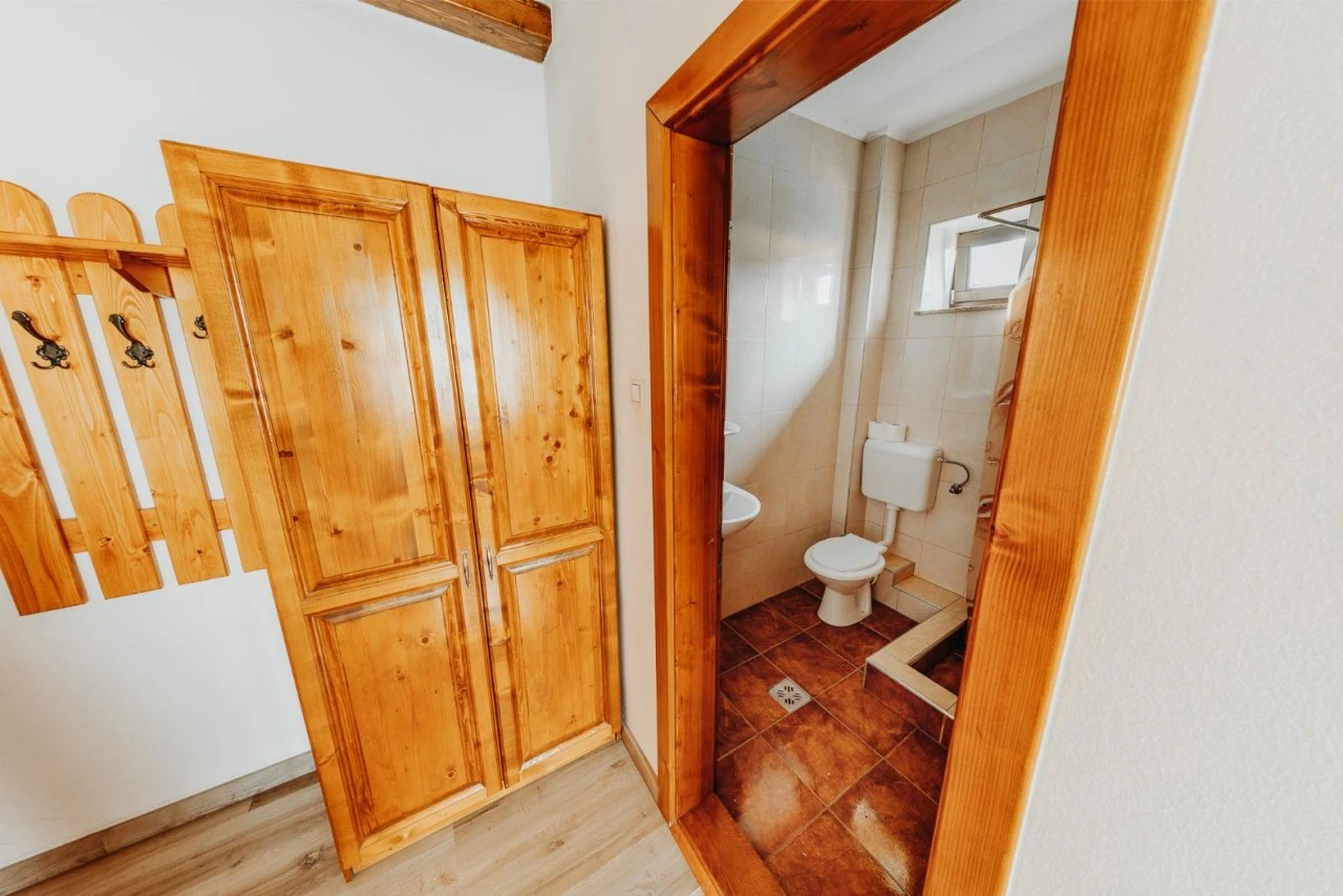 - Pensiunea este amplasată chiar lângă o piscină exterioară, astfel apropierea de centrul wellness asigură relaxare deosebită. Mobilierul primitor al camerelor și panorama către Munții Harghita oferă o experiență de neuitat.