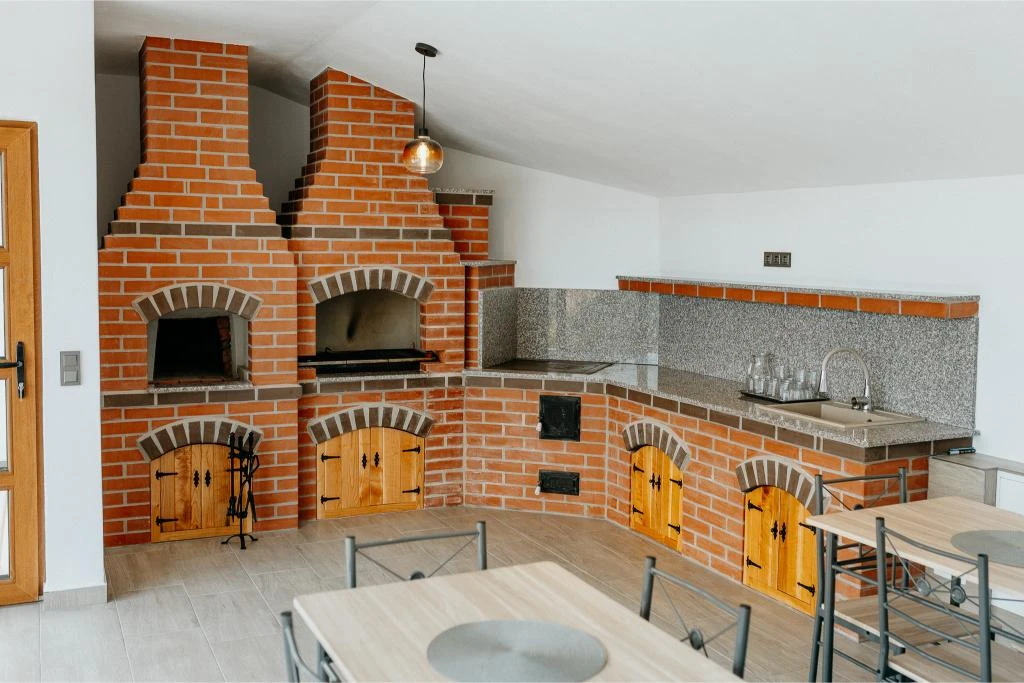 - Oaspeții au la dispoziție o bucătărie complet utilată și un living-sală de mese spațios, ideal pentru reuniuni de familie sau relaxare între prieteni.
