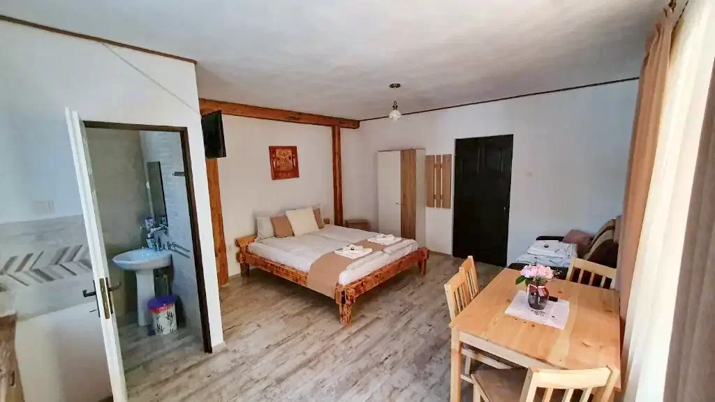 - Fiecare garsoniera poate găzdui 2 adulți și 2 copii, sau 3 adulți (camera cu un pat matrimonial si o canapea extensibila, TV cu ecran plat cu canale prin satelit, un dulap, o baie privata cu duș cu uscător de păr), include colt de bucătărie (cuptor cu microunde, frigider, fierbător).