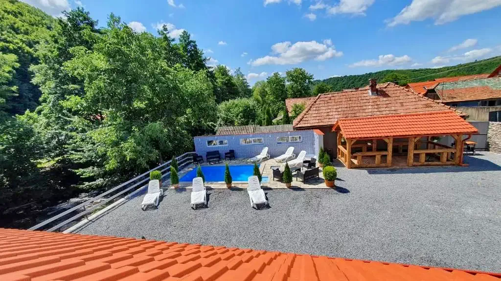 - Piscina încălzita, iluminata (5*3 m), poate fi folosita in sezon