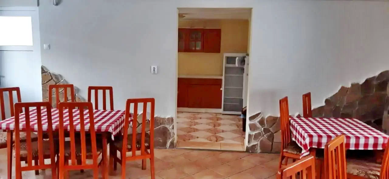- Zonă de masă spațioasă la etaj, pentru 20 de persoane, ideală pentru mese comune.