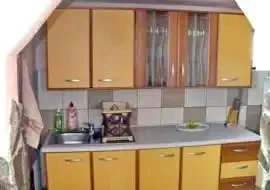 - două bucătării utilate cu frigider, aragaz, tacâmuri, farfurii, etc.