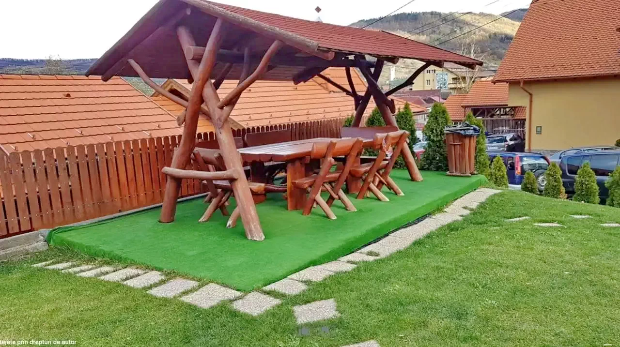 - Pensiunea dispune de o curte amenajată cu foișor, mobilier de grădină, grătar și loc de făcut foc de tabără. Copiii se pot juca în zona de joacă.