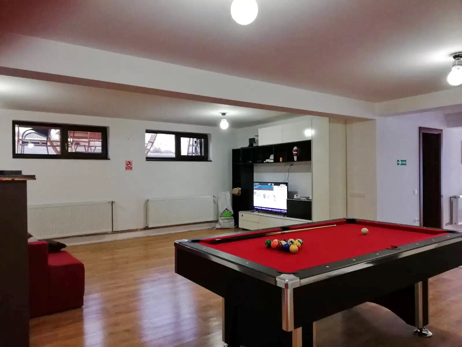 - O cameră de jocuri, situată la demisol, este echipată cu biliard și oferă un spațiu ideal pentru vizionarea de filme.