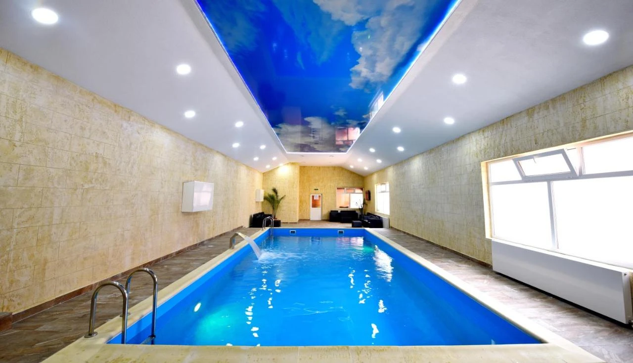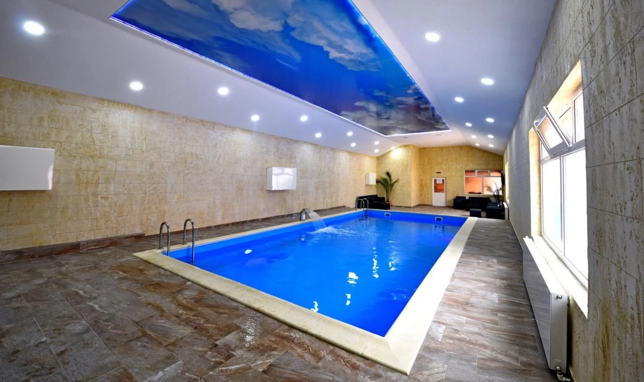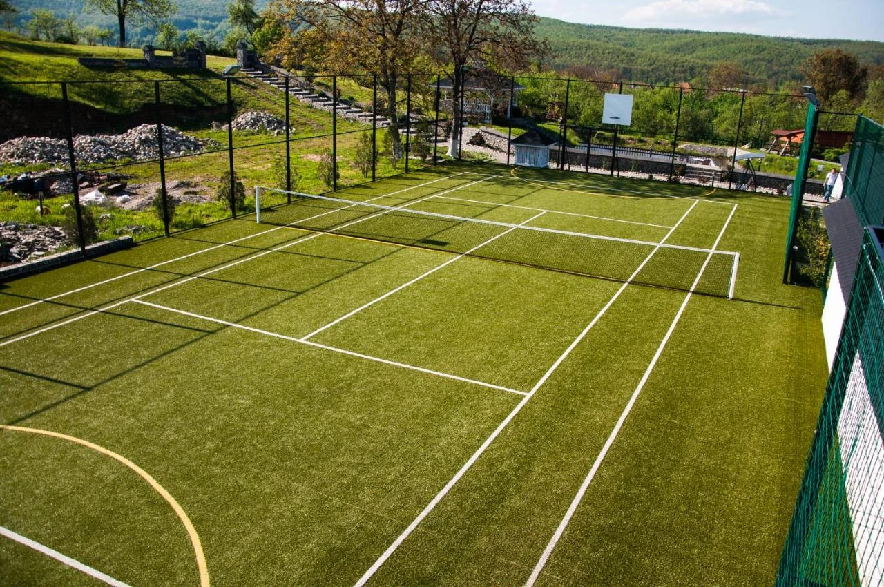 - Piscină interioară încălzită, saună, teren de tenis cu iluminat, grătar, terasă, zonă verde de relaxare, lac pentru pescuit, parcare gratuită supravegheată video, grădină, foișor, leagăne, loc de joacă, zone de picnic și relaxare.