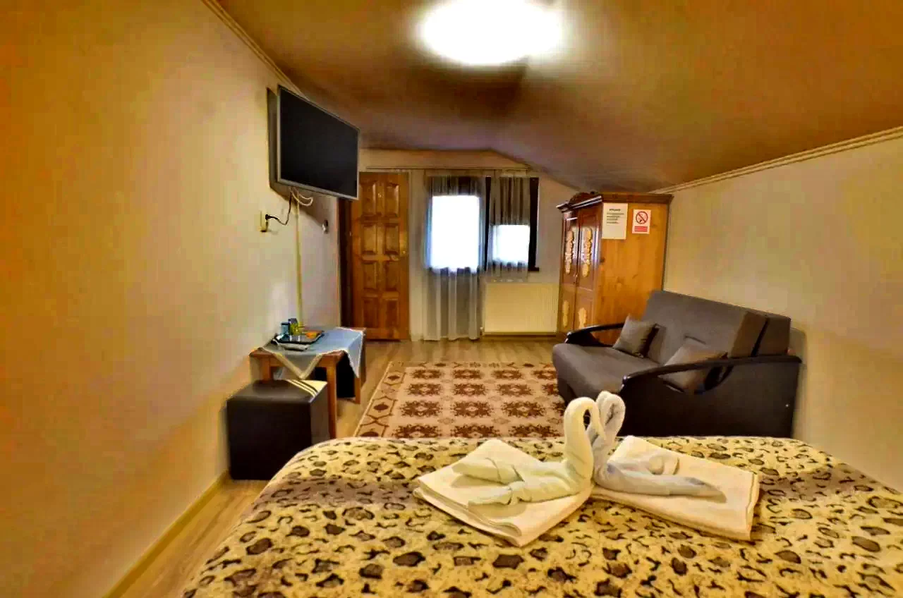 - 1 camera tripla (pat matrimonial, canapea extensibilă), baie proprie si balcon