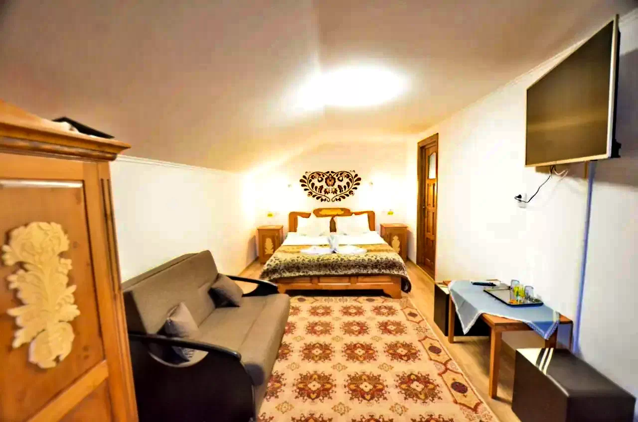 - 1 camera dubla cu pat matrimonial si baie proprie