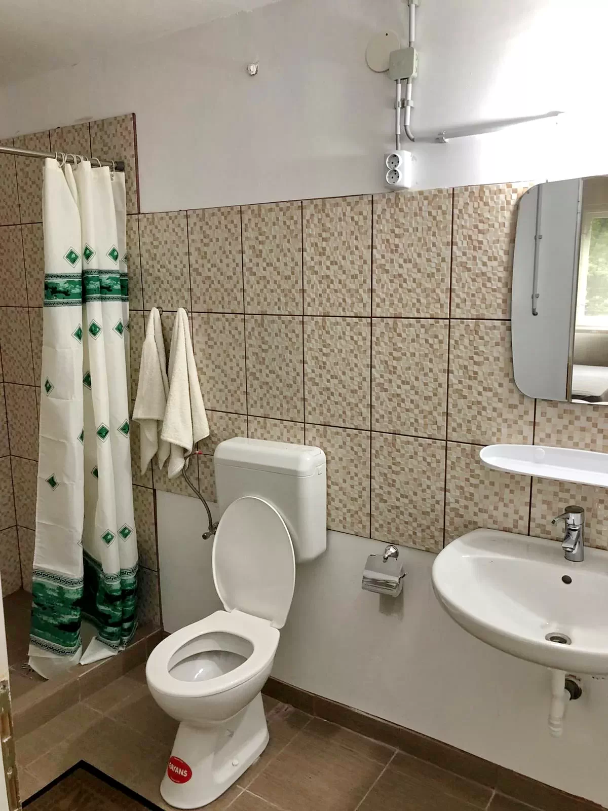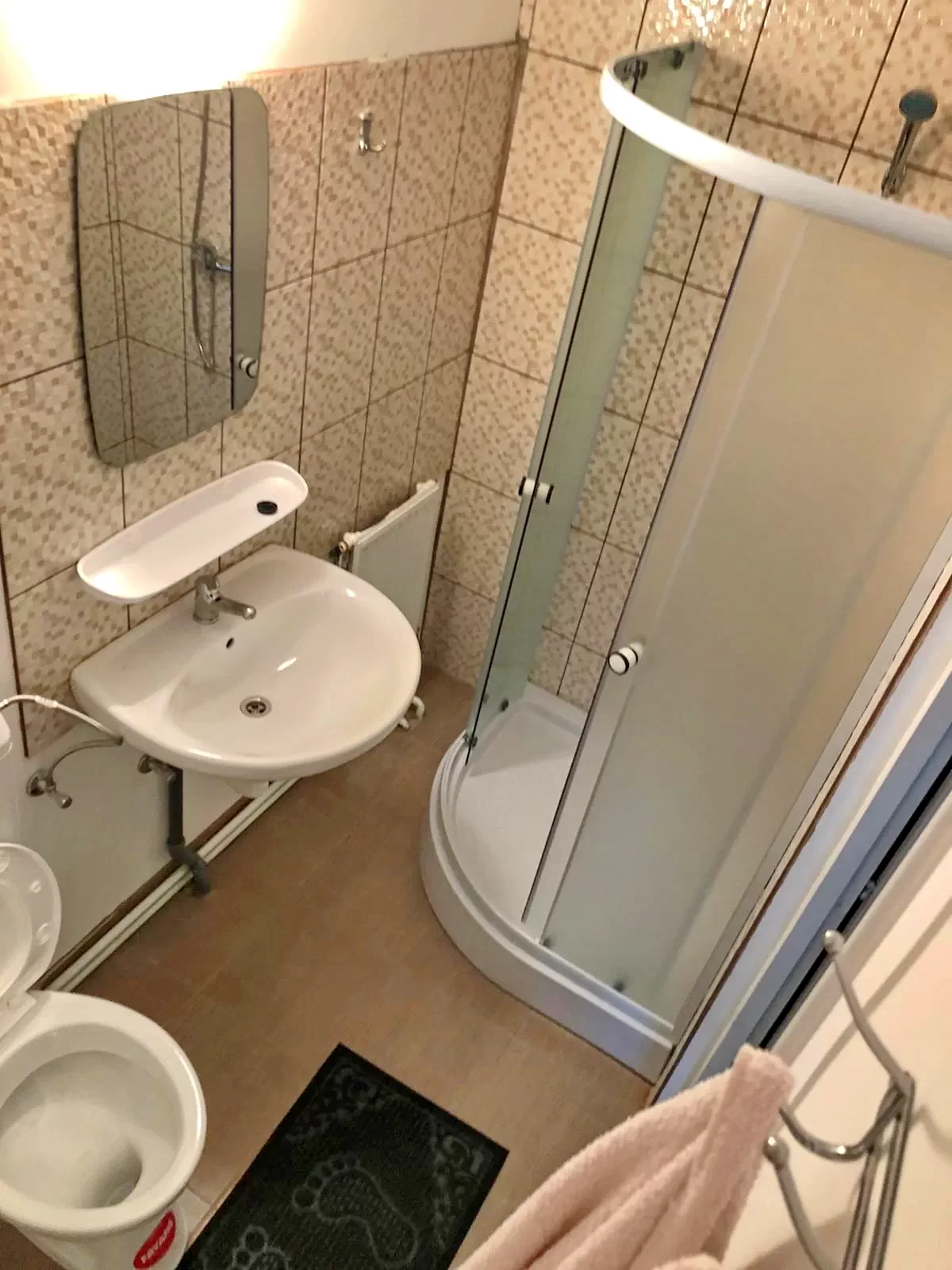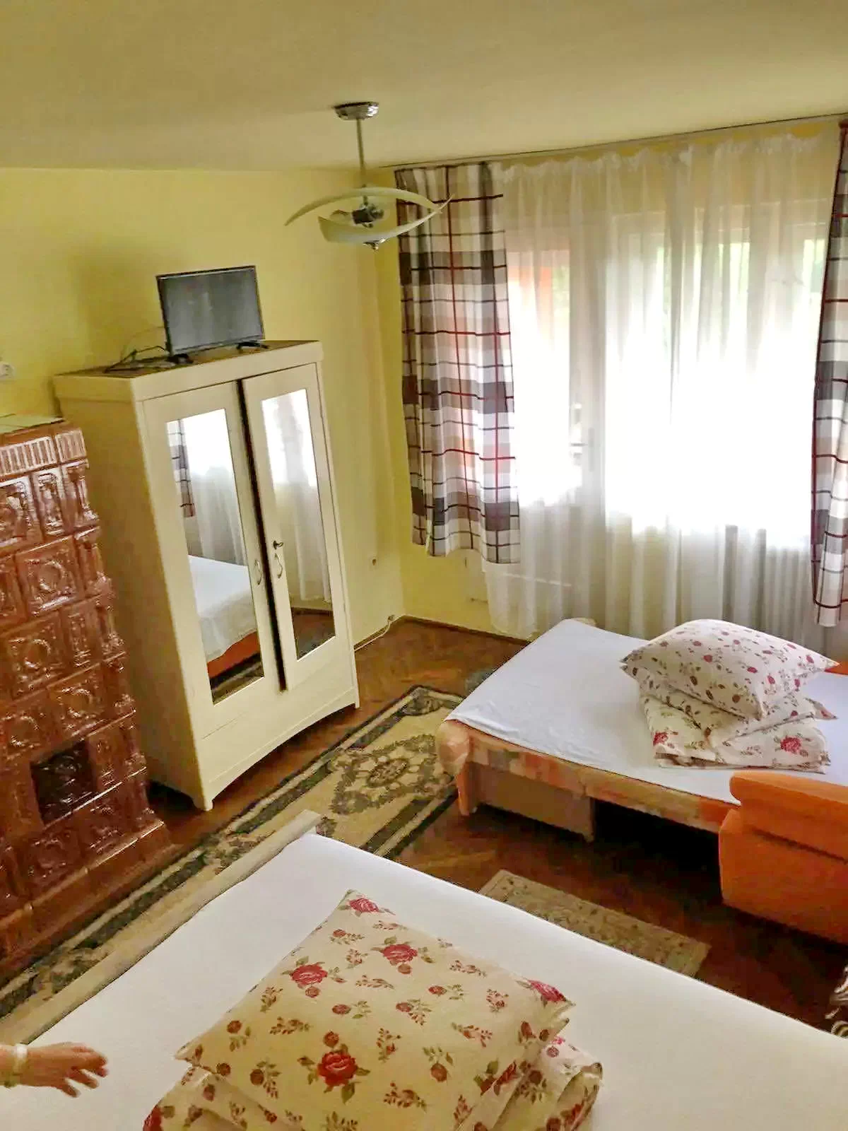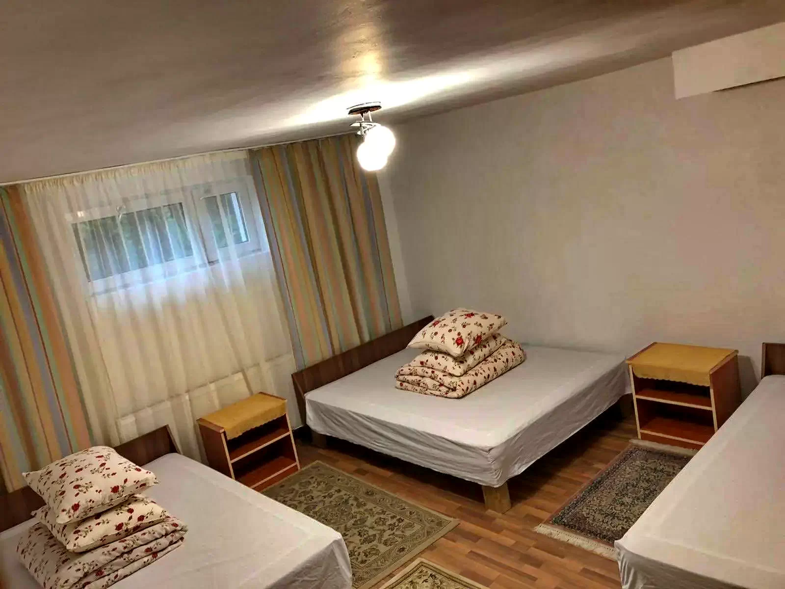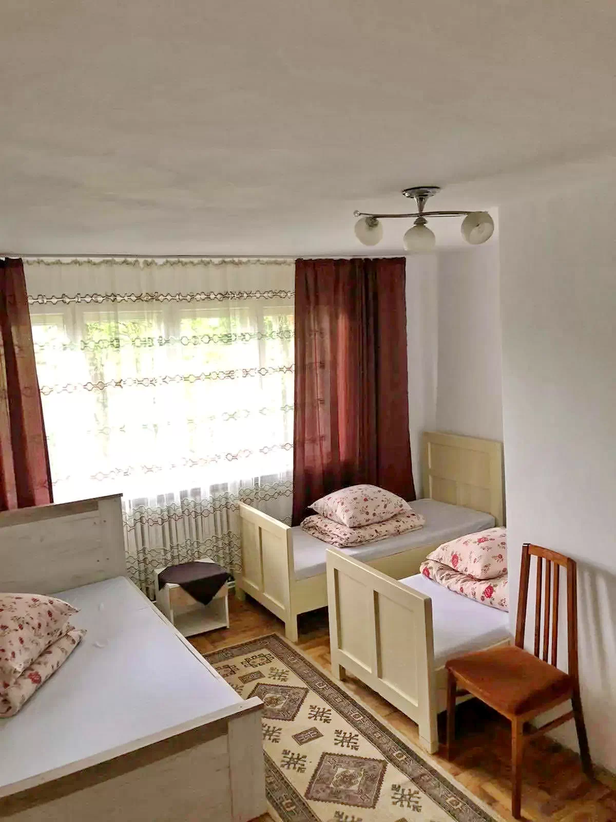 - 2 Camere cu 4 locuri ( 2 adulti si 2 copii) cu o baie comuna langa camera pe hol, O baie cu wc si un dus si inca un WC separat