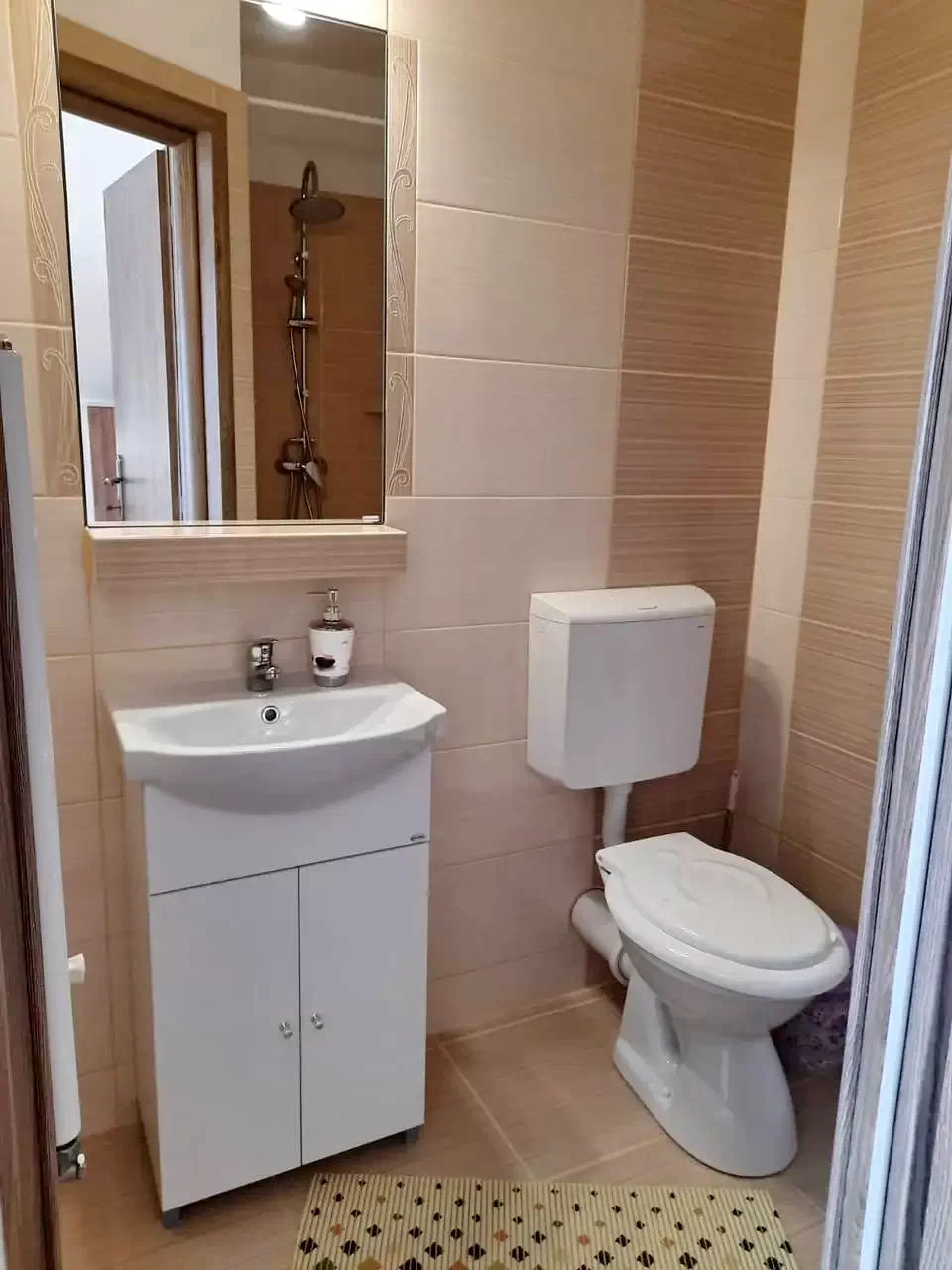 - 2 camere duble, fiecare cu baie proprie și balcon