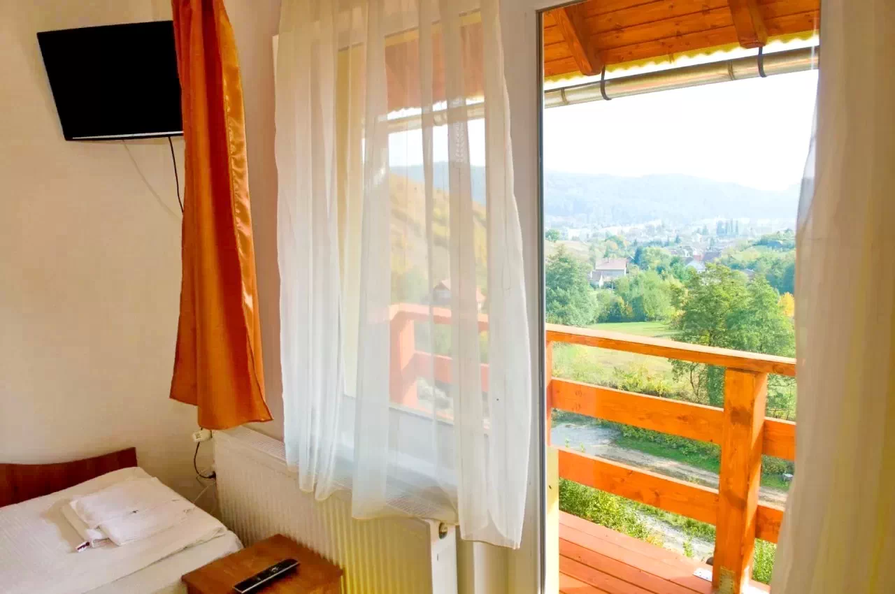 Oferă cazare in camere duble cu terasa, moderne dotate cu baie proprie, apa calda, încălzire cu centrala termica pe lemn, televizor color cu cablu Tv, internet cablu și wireless.