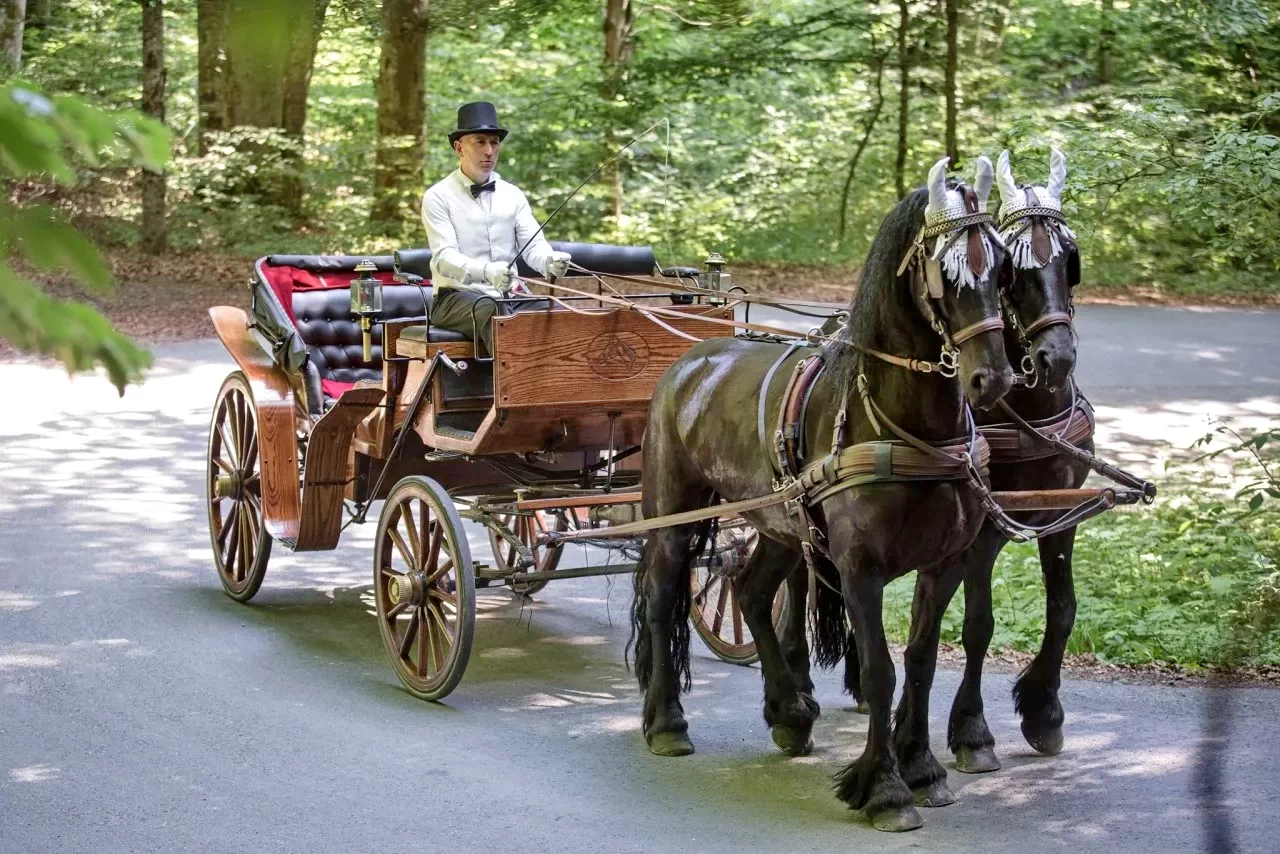 Pe suprafața de 3,5 hectare trăiesc 8 cai, din care un ponei, doi mânji și un cal pentru caleașca din fermă. Pentru călărit sunt folosiți 4 cai.