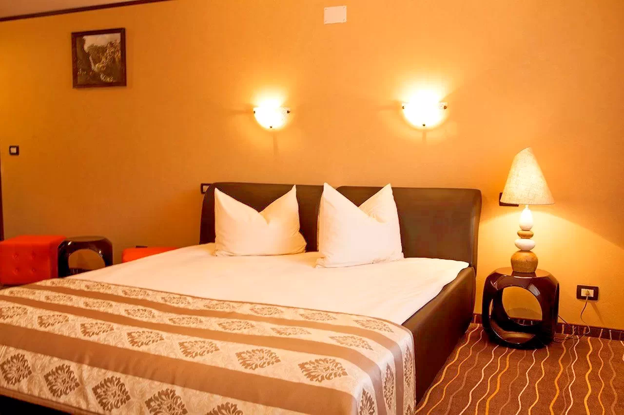 - Camerele double sunt dotate cu doua paturi matrimoniale de dimensiuni mari. Încăperile sunt spațioase si au televizoare LCD, climatizare de ultima generație, minibar, acces la televiziune prin cablu si internet nelimitat (WiFi si cablu). Băile dispun de uscător de par si halate de baie.
