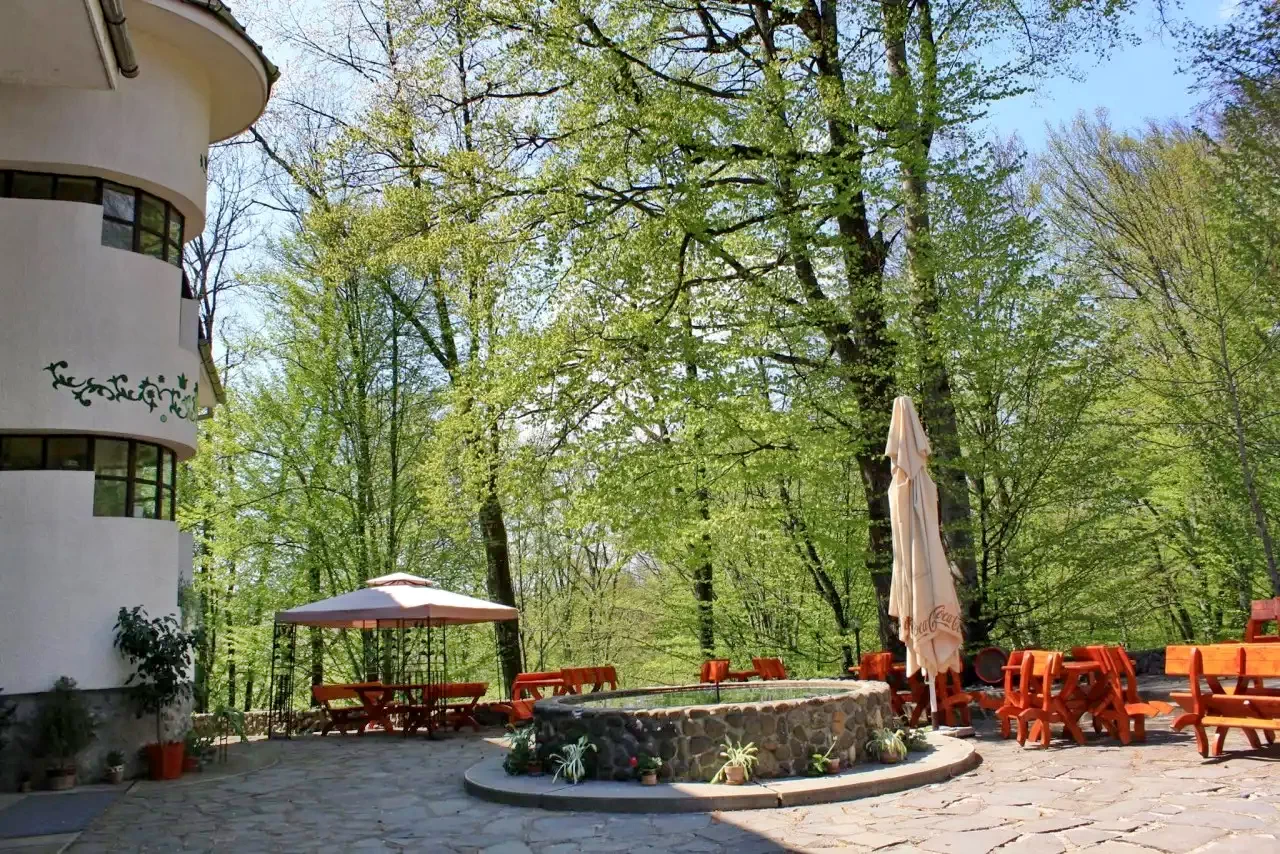 - Terasa hotelului cu 60 de locuri oferă vedere la pădurea și munții din jur.