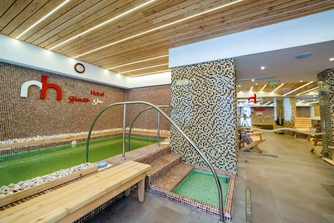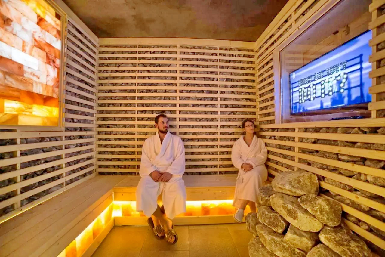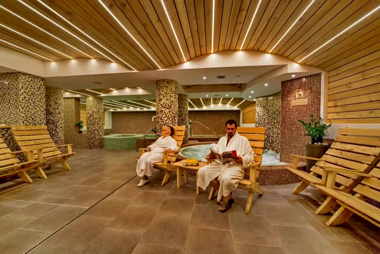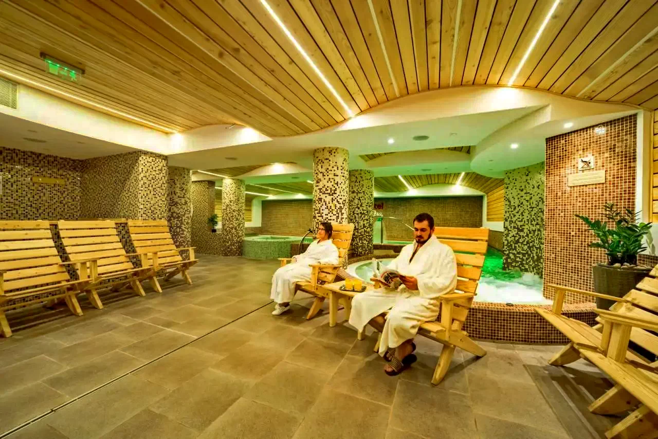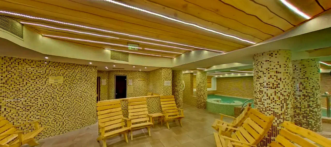 - Spațiul welness cuprinde un bazin cu apă dulce, jacuzzi, bazin cu apă sărată, saună finlandeză și cu aburi, spaţiu de relaxare, masaj, cameră cu sare, dar și un barchiar în incintă.