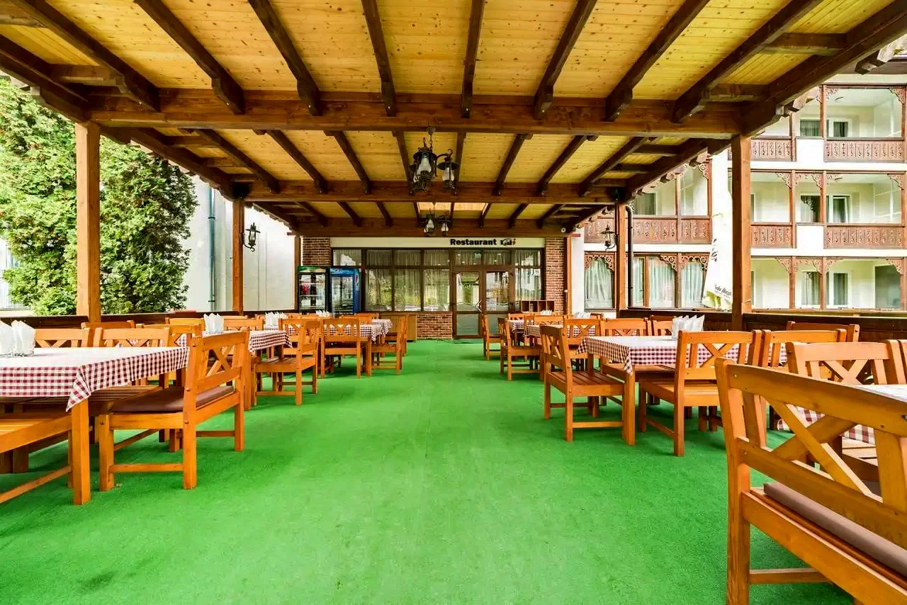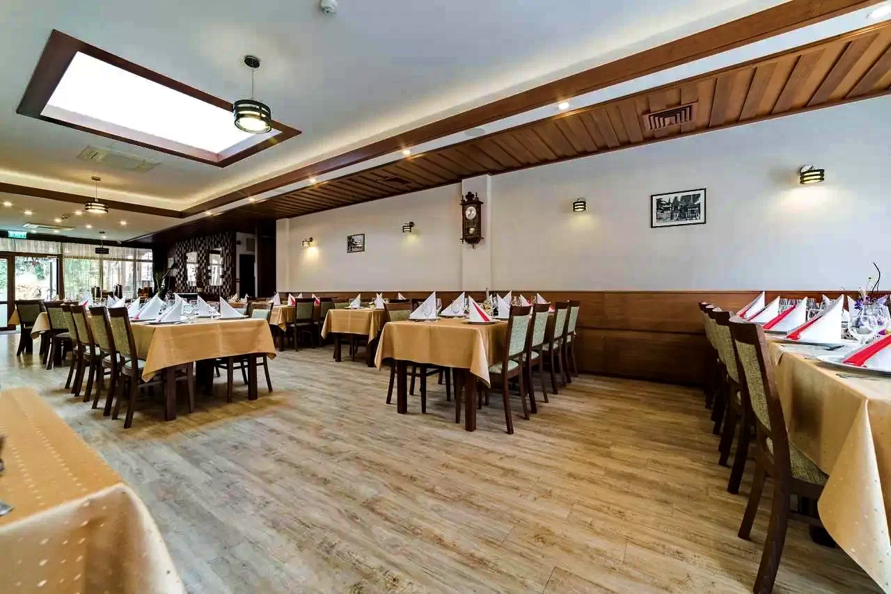 Restaurantul de 70 de persoane si terasa de 75 de persoane hotelului vă oferă produse tradiționale românești și locale, proaspete și delicioase. Sărmăluțe, mămăliguță cu brânză și smântână, tochitură, ciorbițe de tot felul și deserturi care mai de care mai gustoase te îndeamnă la un răsfăț maxim.