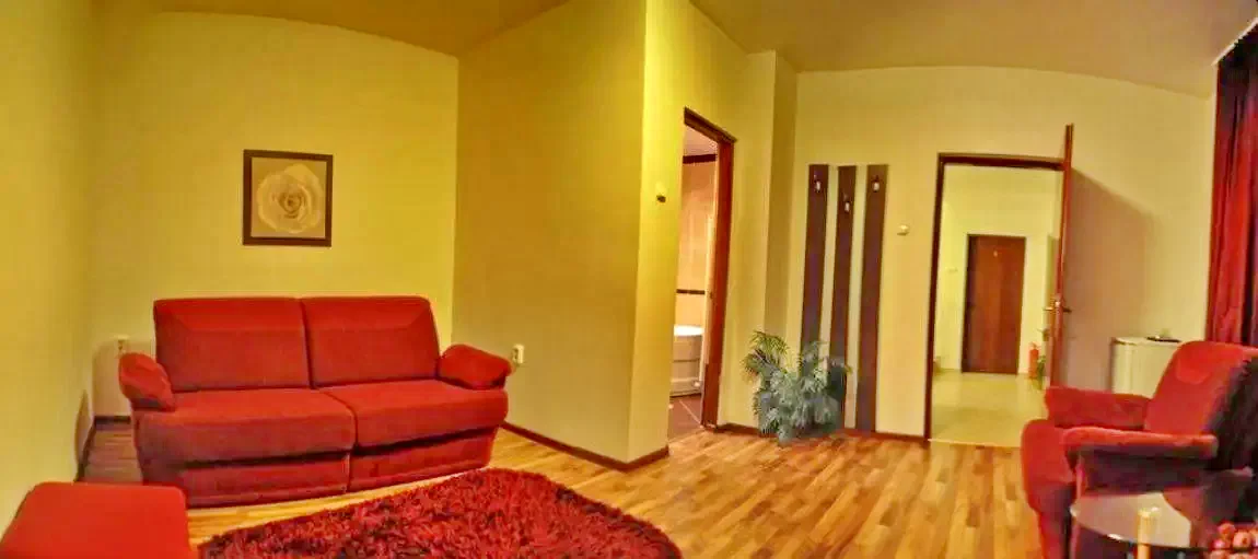 - apartament 1: 2 camere, una cu pat matrimonial, alta cu canapea si fotolii extensibile, baie proprie (38 mp)