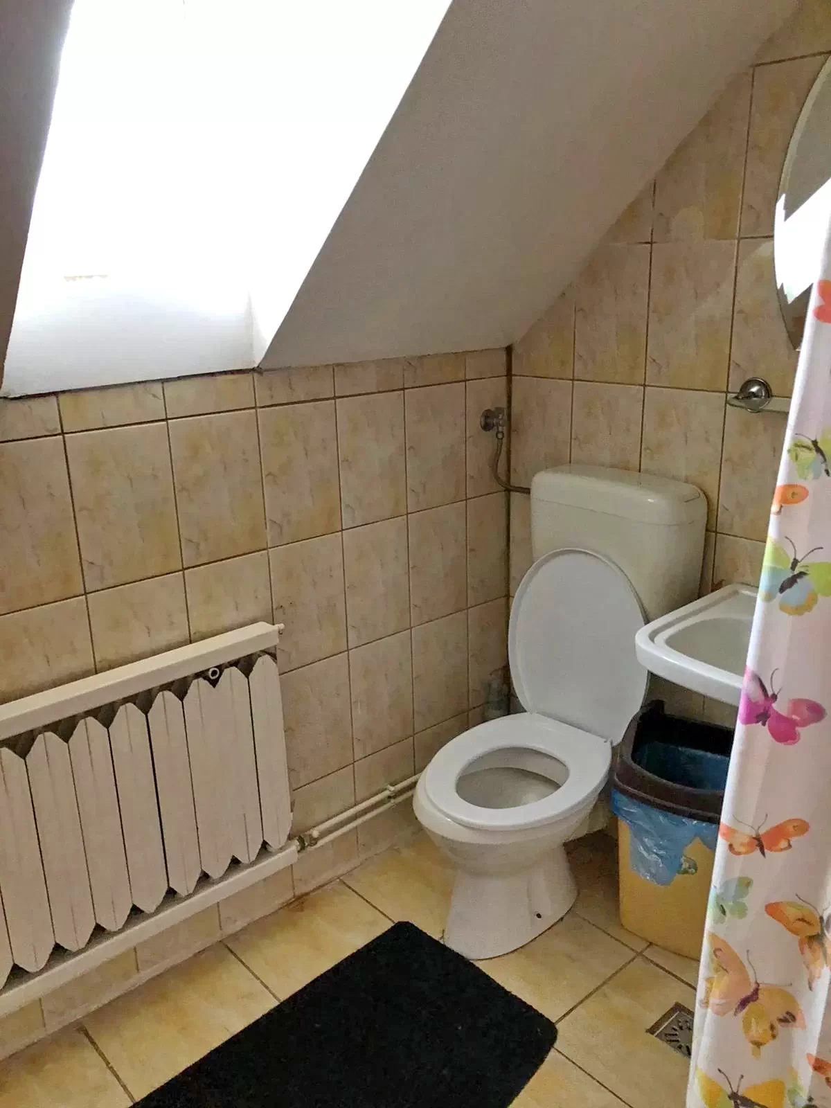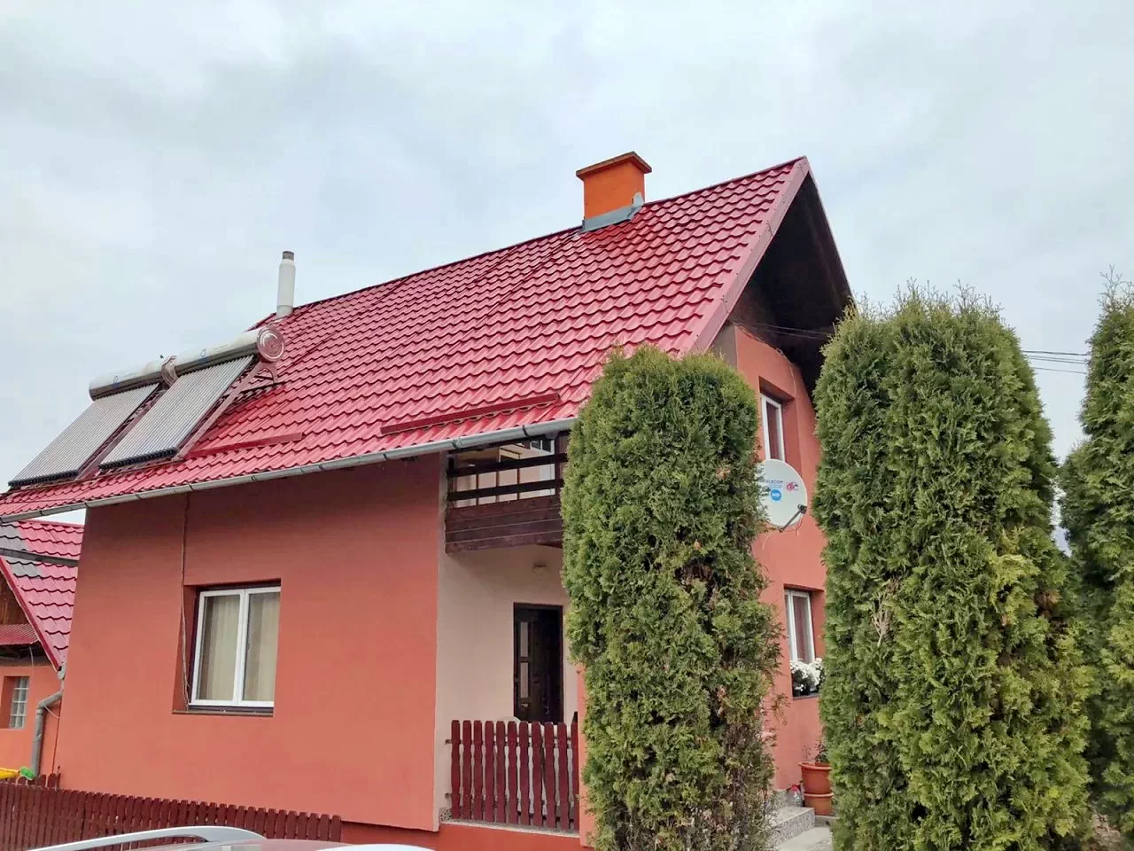 - Etaj: 2 camere duble (pat dublu), 1 cameră triplă (pat dublu și pat simplu), baie.