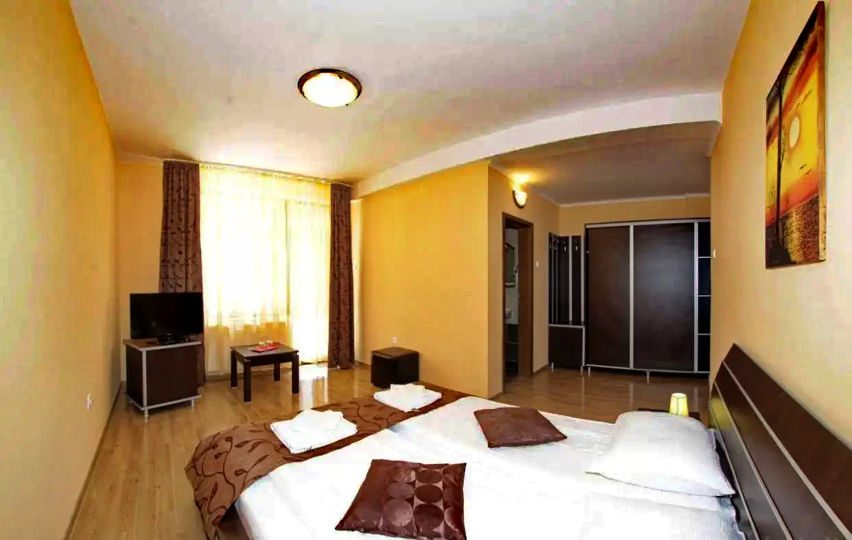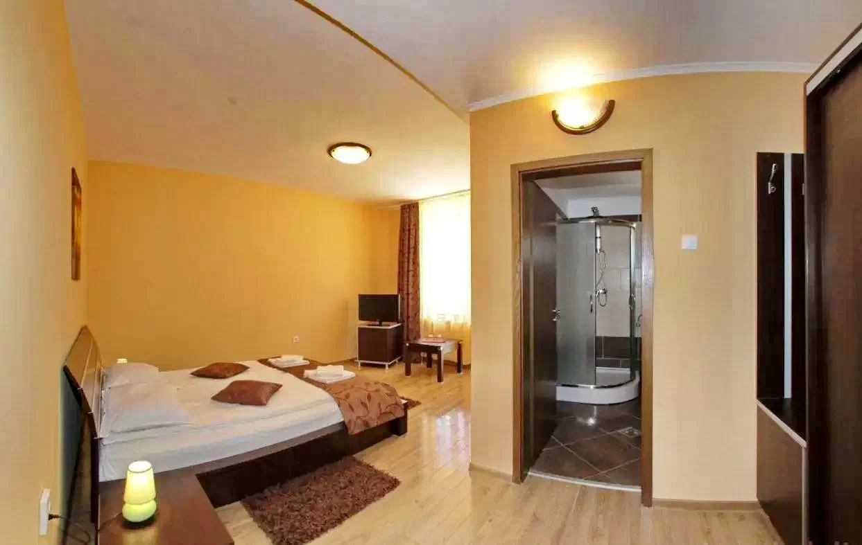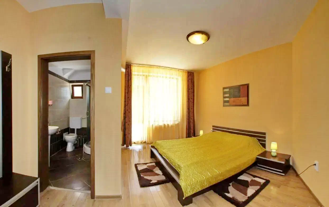 - living cu canapea si fotoliu extensibil. - O camera dubla cu pat matrimonial, baie proprie