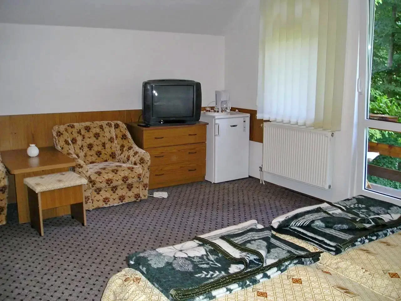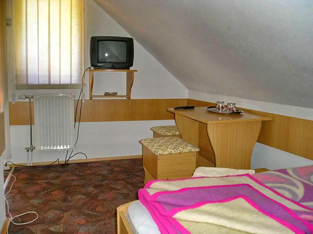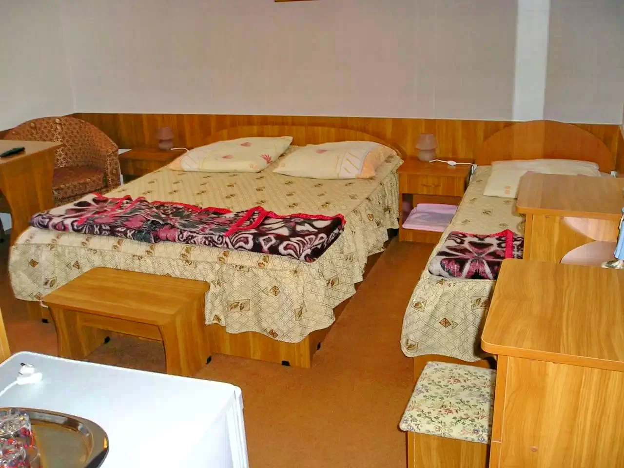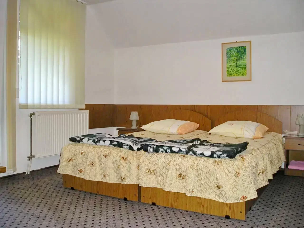1 cameră cu pat matrimonial + pat single (3 persoane/cameră, total 3 persoane)
