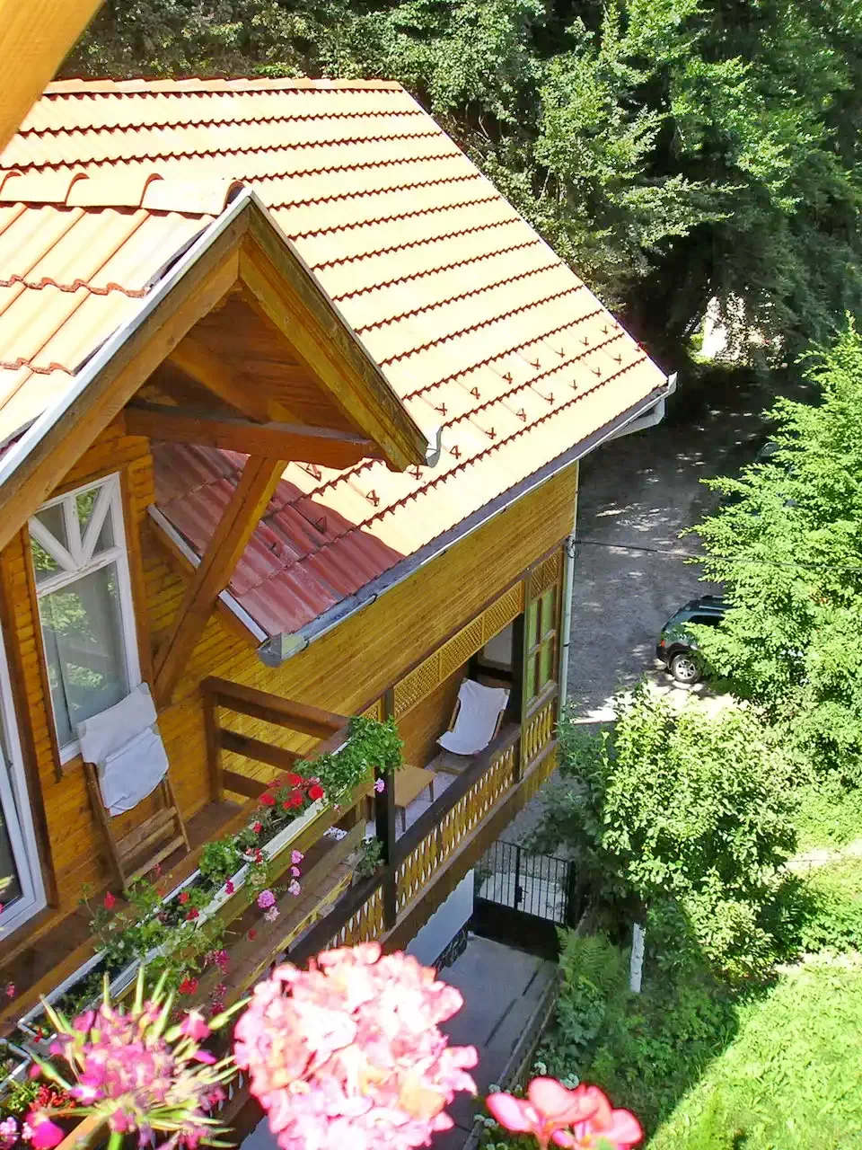 Este situat la doar 700 de metri de Lacul Ursu, la marginea padurii cu vedere panoramica la muntii din jur, intr-un mediu linistit si aproape de natura.
