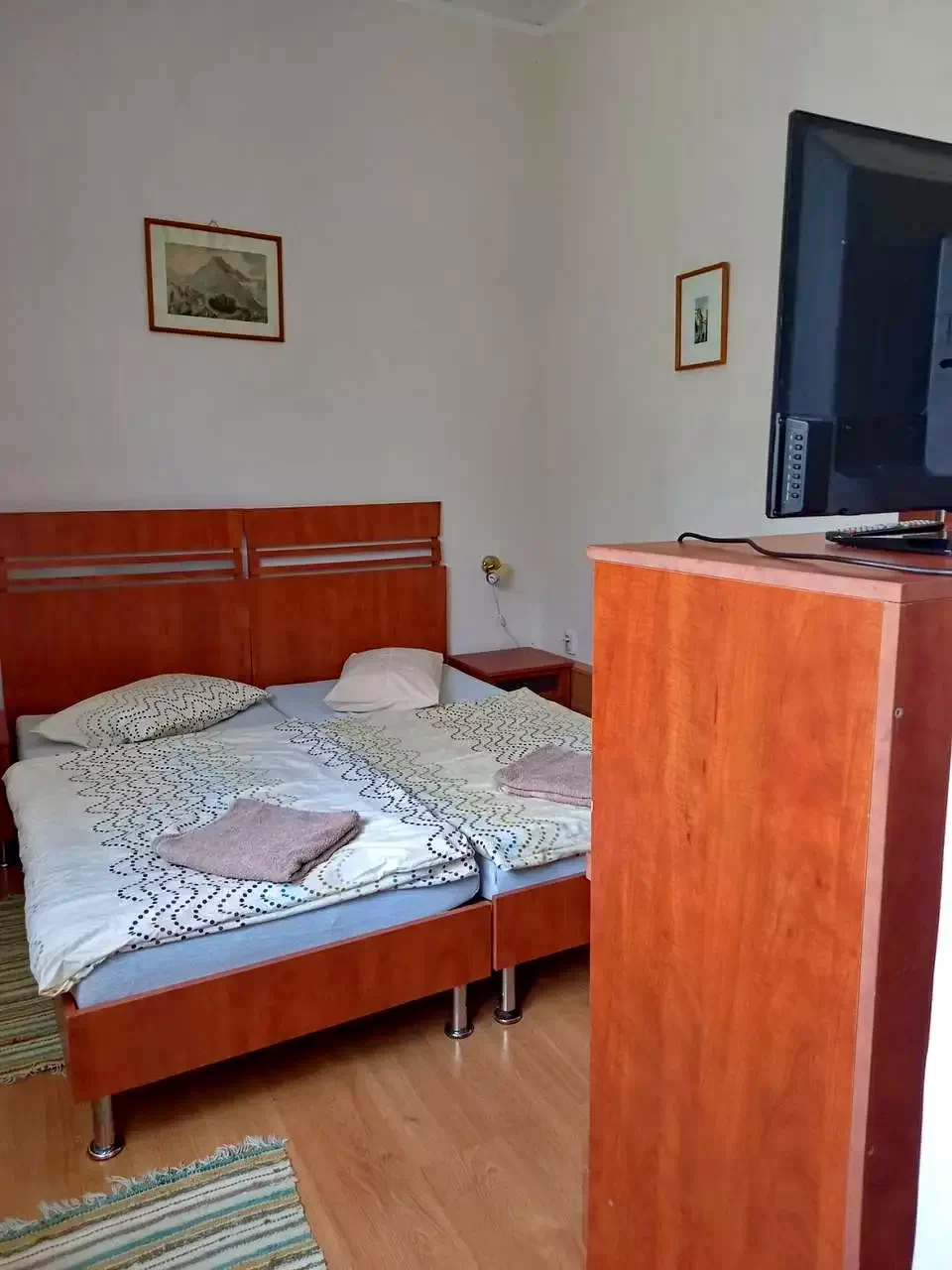 - 1 cameră cu pat matrimonial, cu duș și toaletă