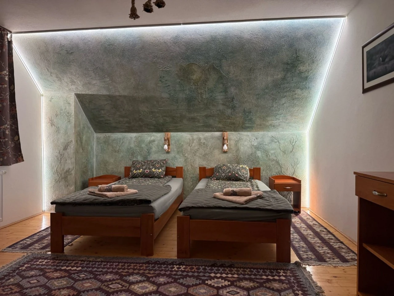 - Cele 4 camere de la etaj pot fi suplimentate cu paturi suplimentare.