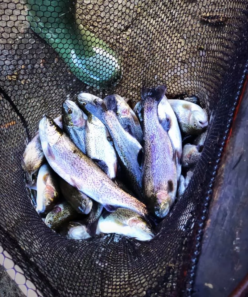 Păstrăvărie proprie, cu posibilitatea de a degusta păstrăv proaspăt gătit.