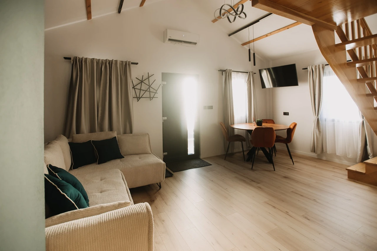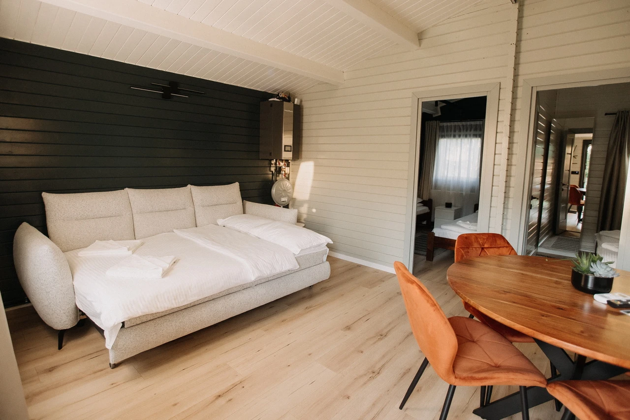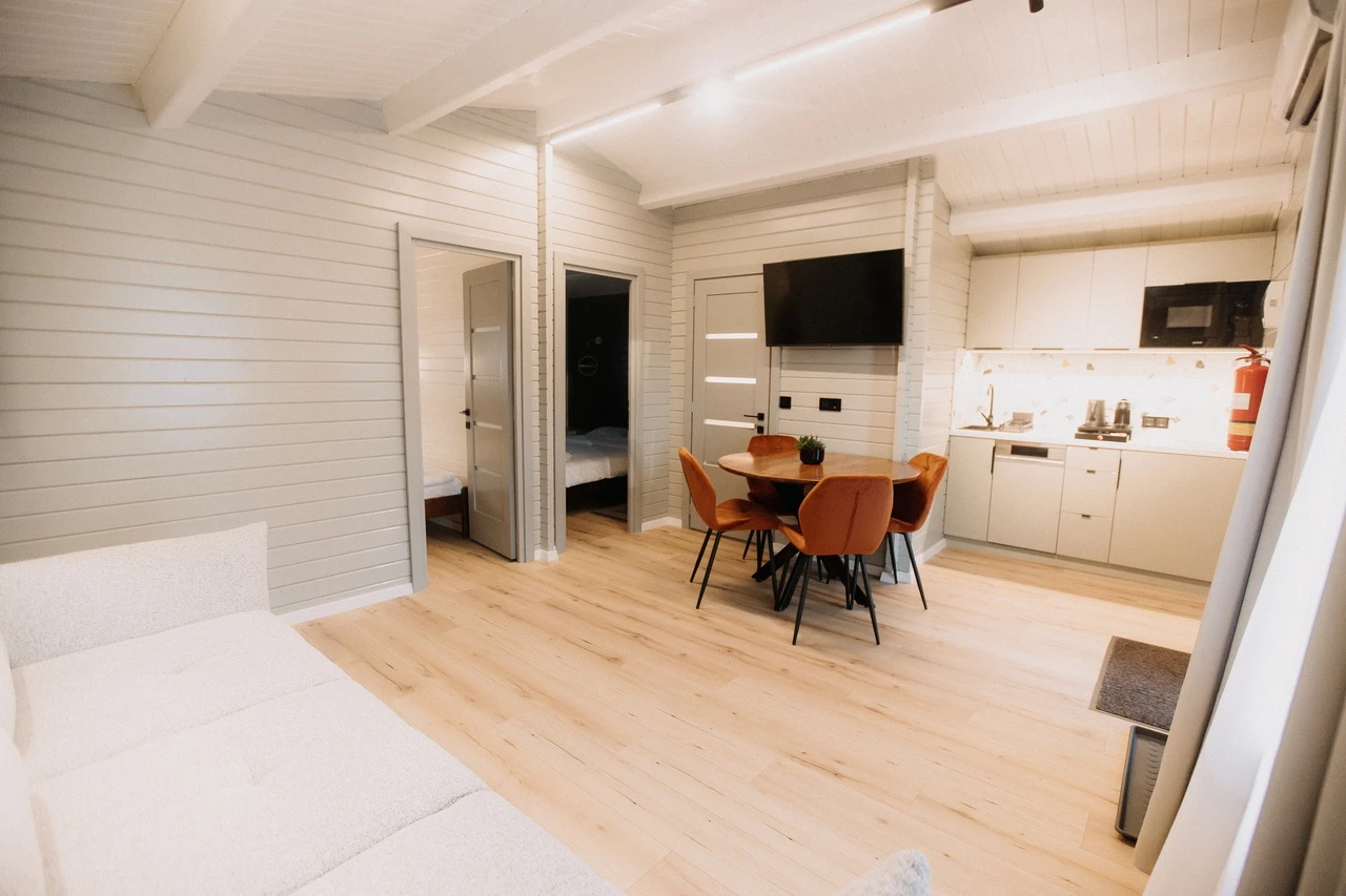 - Pensiunea oferă cazare decenta in tot timpul anului pentru 26 persoane in 7 case mici de cate 2 persoane și 3 case mari de 6 persoane. Pensiunea alegerea ideala atât familiilor cu copii, cat si grupurilor de prieteni dornici de liniște si armonia naturii.
