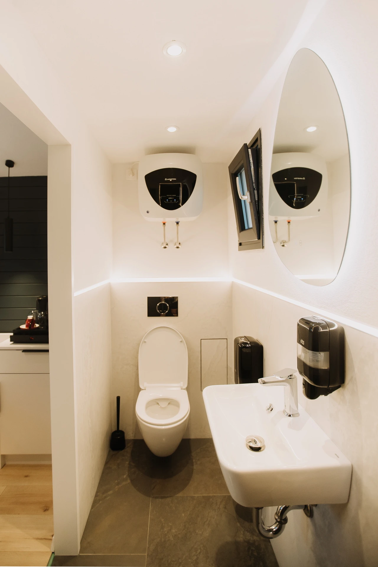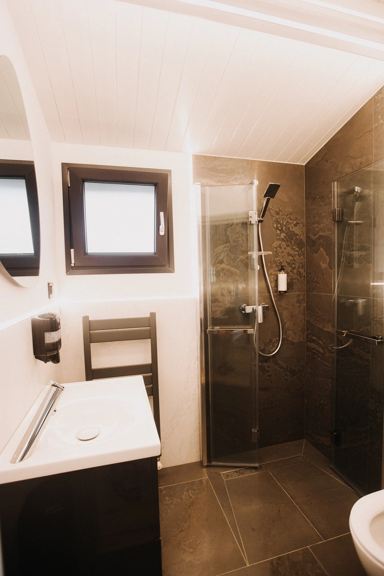 - Bai separate cu dus si WC pentru cei care vin cu corturi sau rulota.